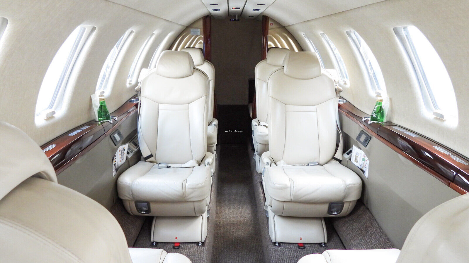 | Interior | | 2 Crew-, 4 Club Seats; 2 single fwd. Seats, double seat Divan (Couch) and belted Toilet Seat (max. 9 Pax), AC Power Outlets, Lavatory with sliding door for privacy, 2 additional foldable Pax Tables on seat 7 & 8, Satcom Telephone, GoGo Advance L3 Wi-Fi, Airshow with Media Center and 2 additional Screens. |