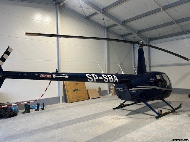 | Base data | | Type: | Helicopter (Piston) | | Make: | Robinson | | Model: | R44 II | | Year built: | 2022 | | Registration No.: | SP-SBA | | Serial No.: | 14539 | | Attributes: | Always hangared | | Last annual: | 1/2026 | | Location: | Poland, Gdynia | | Total Time (TTAF): | 270 h | | Price: | zł 3.000.000 (~ ZAR 13.388.338) | | EU VAT paid: | yes | | No. of passengers: | 4 |