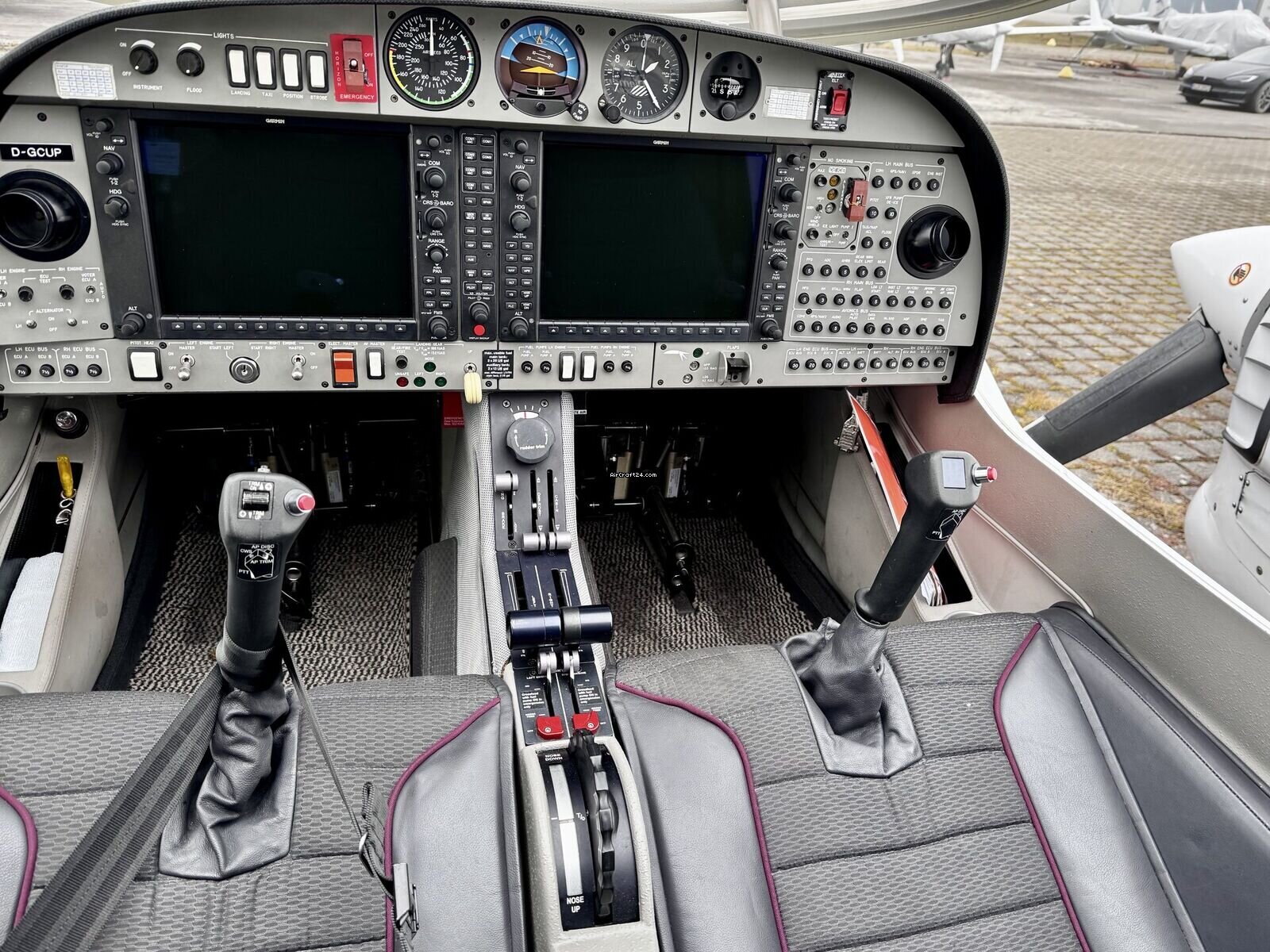 | Base data | | Type: | Multiprop | | Make: | Diamond | | Model: | DA42 NG | | Year built: | 2009 | | Registration No.: | D-GCUP | | Serial No.: | 42.N007 | | Attributes: | IFR certified IFR equipped Always hangared | | Location: | Germany, Augsburg, EDMA | | Total Time (TTAF): | 1940 h | | Price: | € 743.750 (~ ZAR 14.177.363) | | Net-price: | ZAR 11.913.750 € 625.000 |