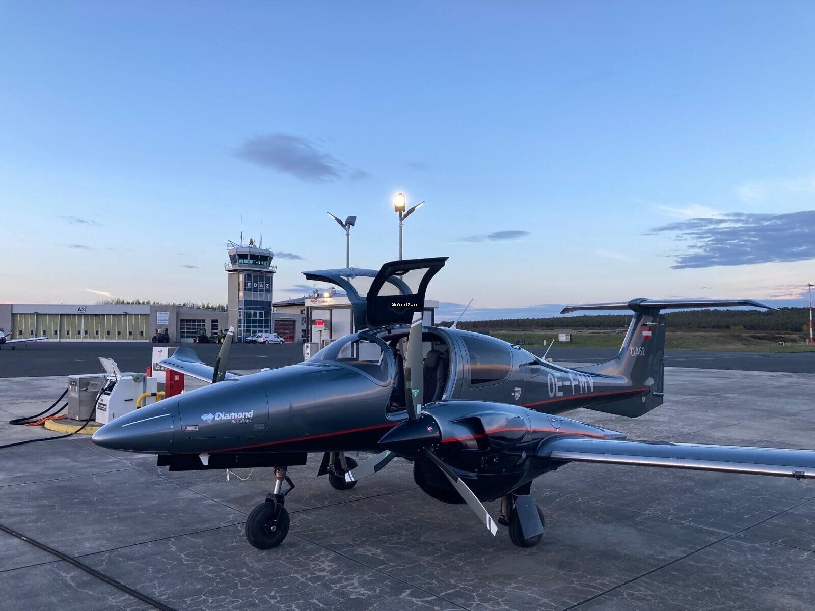 | Base data | | Type: | Multiprop | | Make: | Diamond | | Model: | DA62 | | Year built: | 2024 | | Registration No.: | OE-FMV | | Serial No.: | 62.264 | | Attributes: | IFR certified IFR equipped Always hangared | | Location: | Germany, Schönhagen, EDAZ | | Total Time (TTAF): | 100 h | | Price: | € 1.487.500 (~ ZAR 28.231.858) | | Net-price: | ZAR 23.724.250 € 1.250.000 |