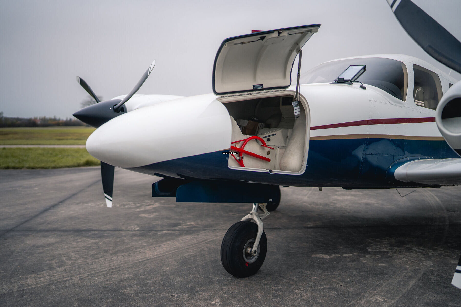 | Exterior | | Well maintained (9/10) dark blue paint with red and golden stripes. Retrofitted with MT Propellers. |