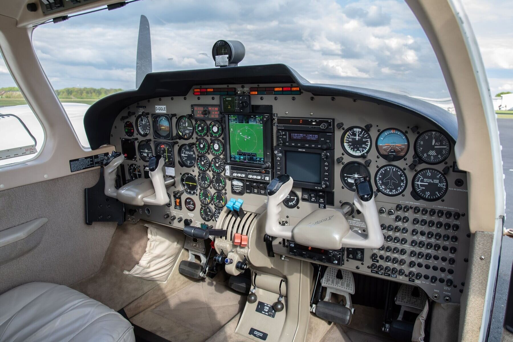Inside, the cabin is designed for the high-end traveler, featuring a classic Bright Beige interior in a spacious club-seating configuration. Passengers can travel in total comfort regardless of the outside temperature thanks to the rare luxury of factory Air Conditioning, while the integrated entertainment center and individual reading lights ensure every journey is as relaxing as it is productive. For the pilot, this aircraft is a highly capable all-weather platform, fully FIKI certified and with supplemental oxygen. The flight deck is a masterclass in modern avionics, headlined by the Garmin GTN 750 and supported by a King KFC 150 Autopilot with GPSS Roll Steering, offering a turnkey solution for those who refuse to compromise on safety or luxury.