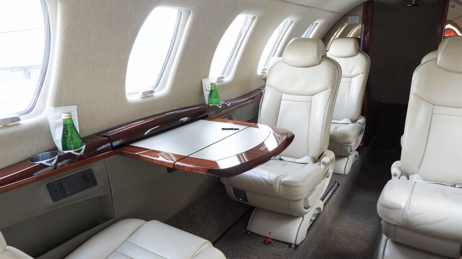 | Interior | | 2 Crew-, 4 Club Seats; 2 single fwd. Seats, double seat Divan (Couch) and belted Toilet Seat (max. 9 Pax), AC Power Outlets, Lavatory with sliding door for privacy, 2 additional foldable Pax Tables on seat 7 & 8, Satcom Telephone, GoGo Advance L3 Wi-Fi, Airshow with Media Center and 2 additional Screens. |