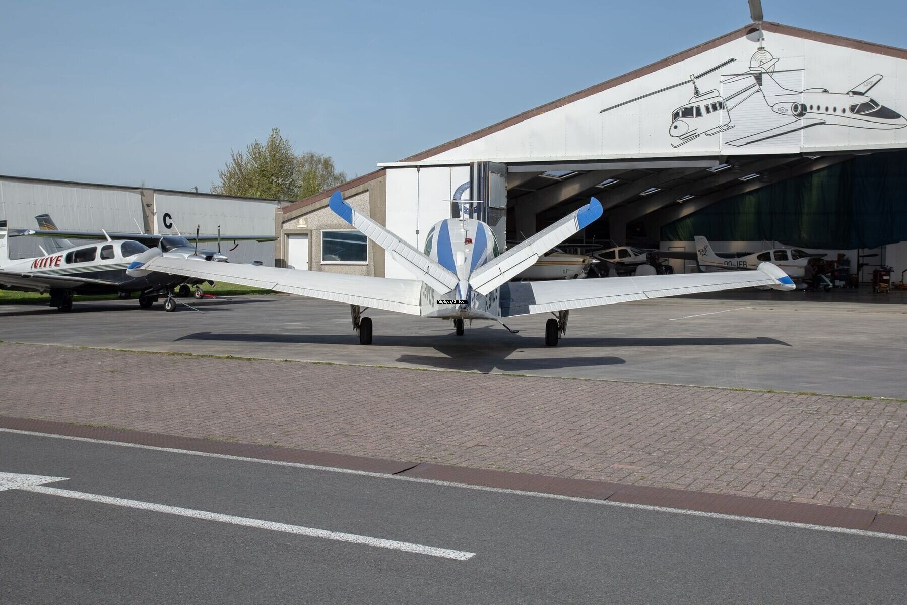 | Exterior | The blue and grey striping gives the aircraft a tidy, businesslike look, and while