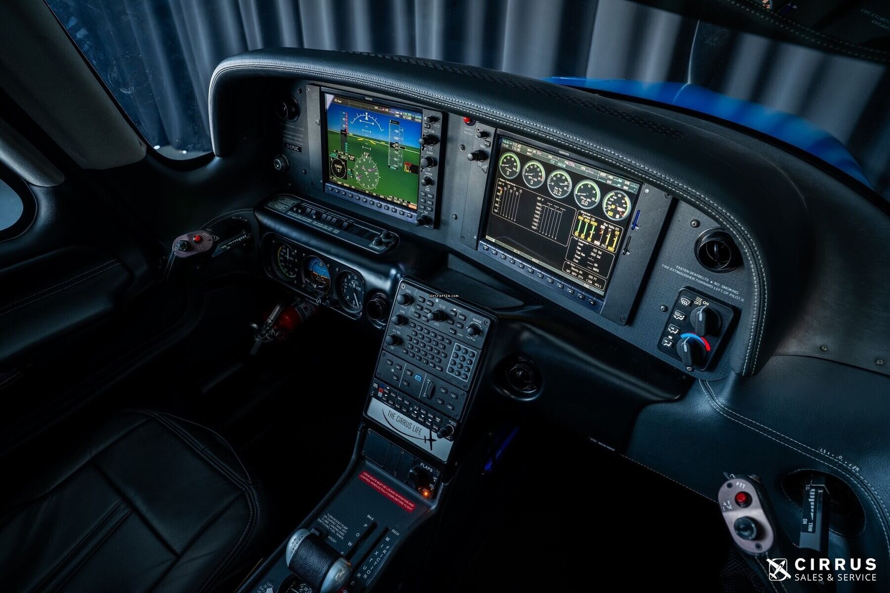 | Avionics | 10” Screens MFD/PFD Cirrus Perspective by Garmin (version .38) with Baro/VNAV, user defined holdings and Smart Airspace