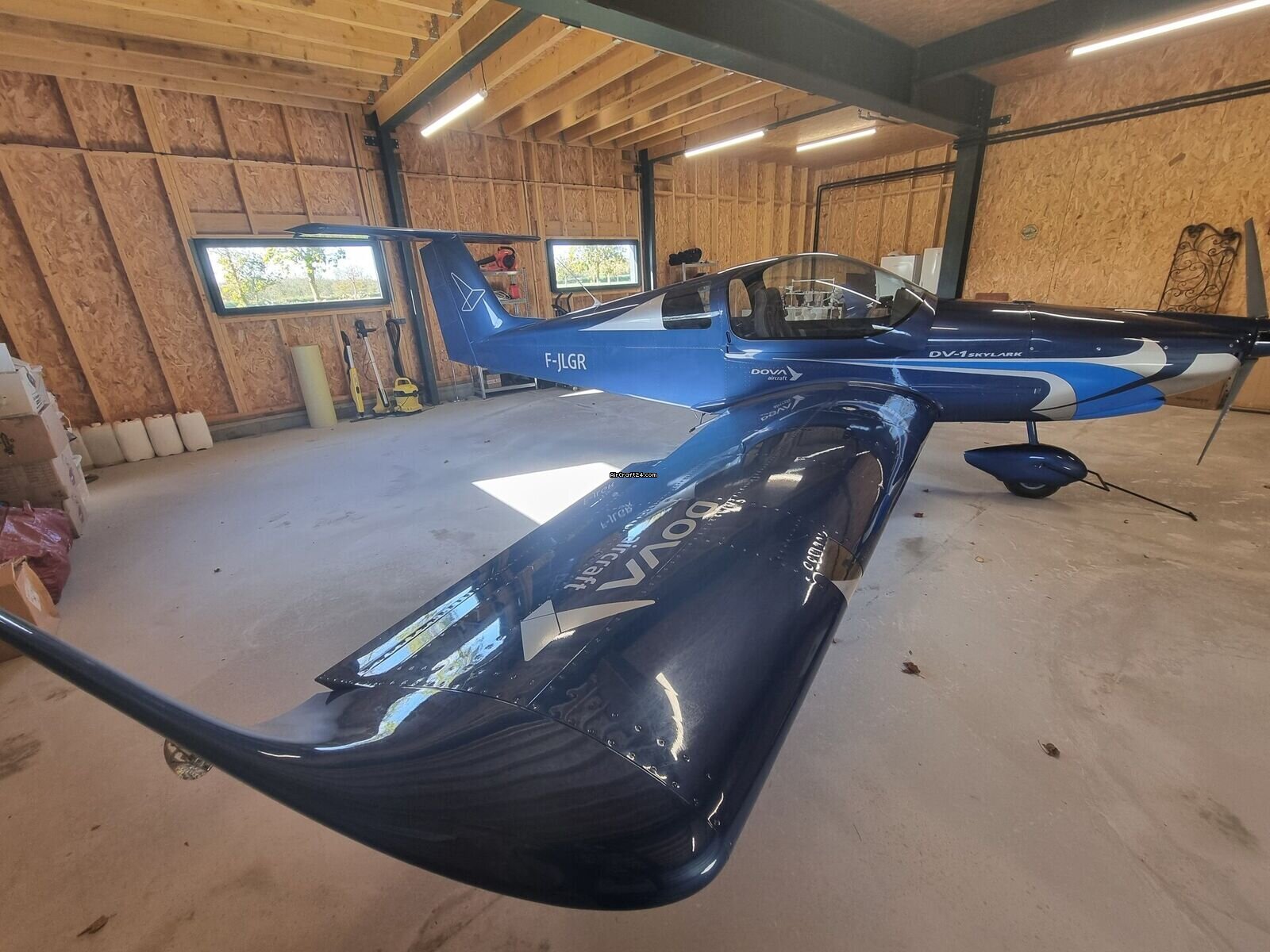 | Base data |  | Type: | Single Prop |  | Special Type: | Light Sport Aircraft |  | Make: | Dova |  | Model: | DV1 Skylark |  | Year built: | 2024 |  | Registration No.: | F Dvjk |  | Attributes: | Always hangared |  | Location: | France, Verchocq |  | Total Time (TTAF): | 20 h |  | Price: | € 160.000 (~ ZAR 3.209.984)