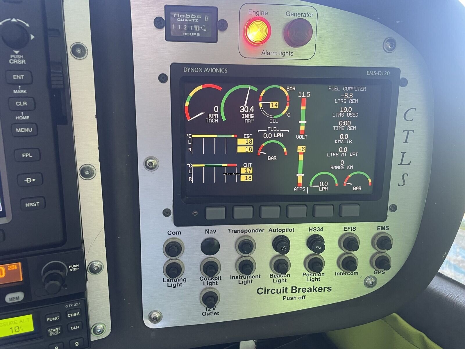 Engine(s) | Number of engines: | 1 | Make/Model: | Rotax 912 ULS | Total Time: | 1230 h | TBO (hours): | 2000 h | TBO (years): | 15 yrs | Prop Make/Model: | Neuform CR3 | Prop Total Time: | 1230 h |