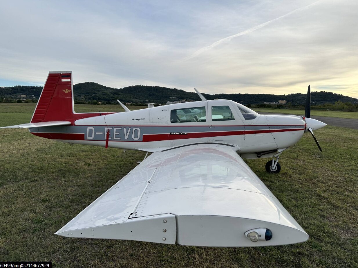 | Base data | | Type: | Single Prop | | Make: | Mooney | | Model: | M20J 201 | | Year built: | 1979 | | Registration No.: | D-EEVO | | Location: | Switzerland | | Price: | € 114.500 (~ ZAR 2.174.916) |