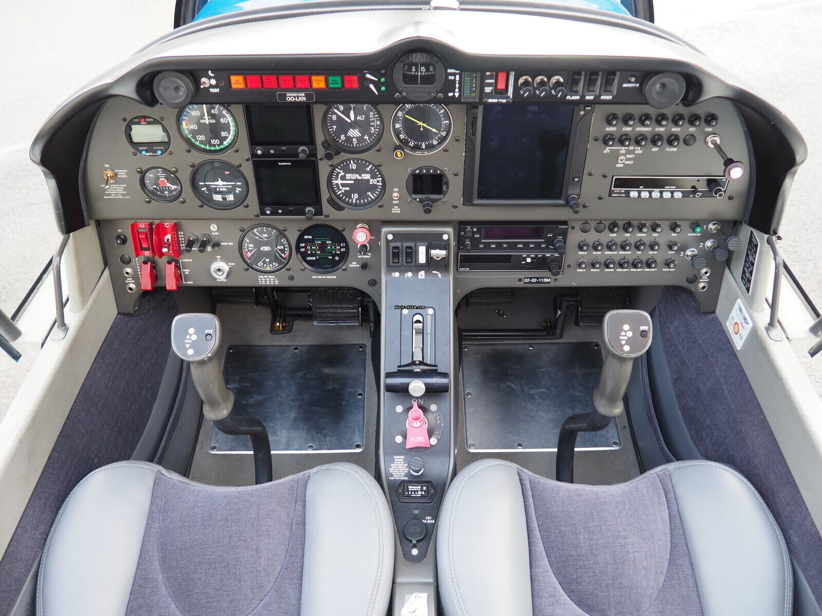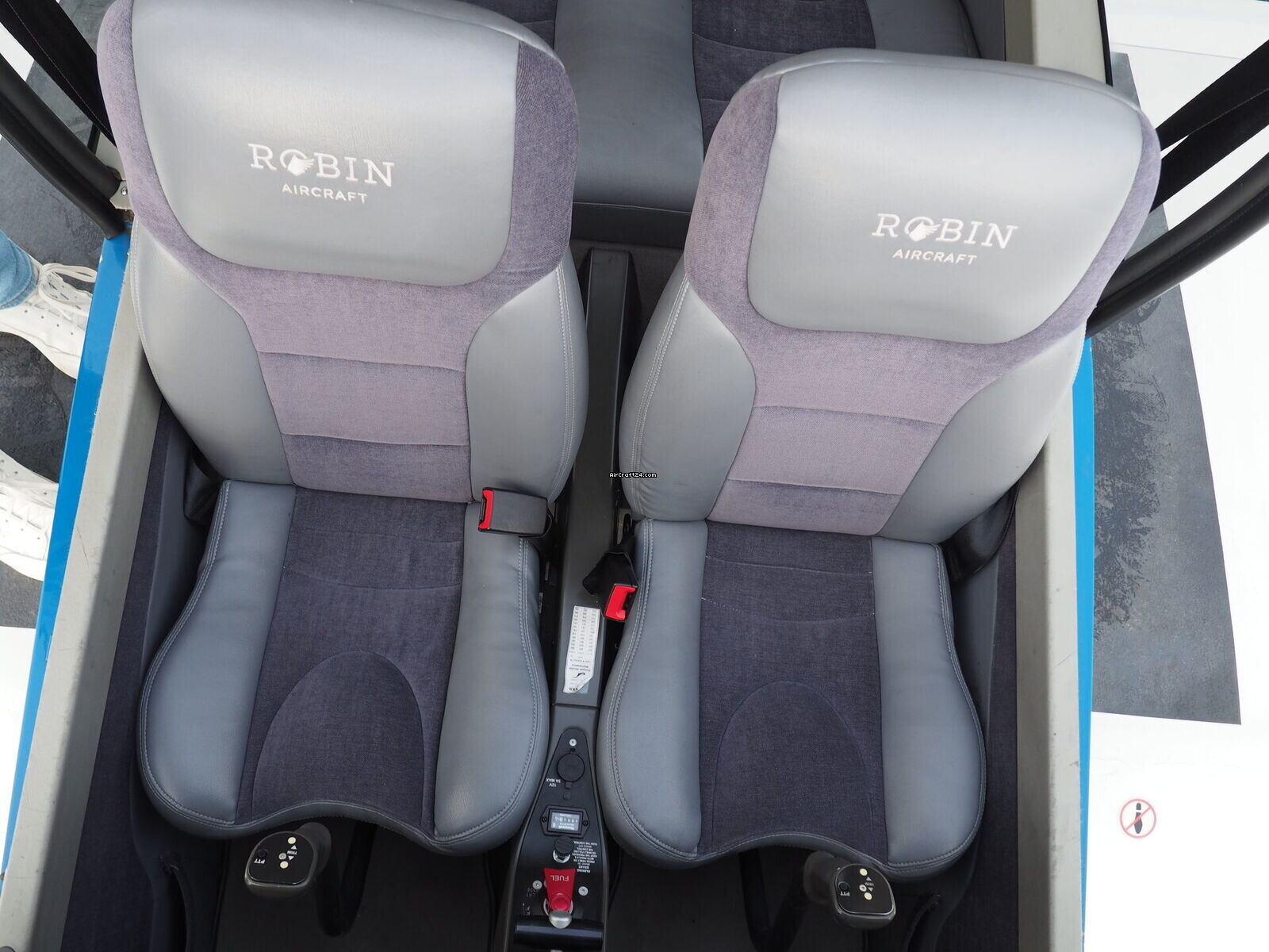 | Interior | | The cabin of this Robin DR-400 is a testament to thoughtful ergonomics and premium materials, offering a spacious four-seat configuration that ensures comfort for both pilot and passengers. The interior features a striking slate-grey and charcoal upholstery design. The seats are finished in a durable, high-quality fabric with light grey synthetic leather accents for a modern, automotive-style feel. |