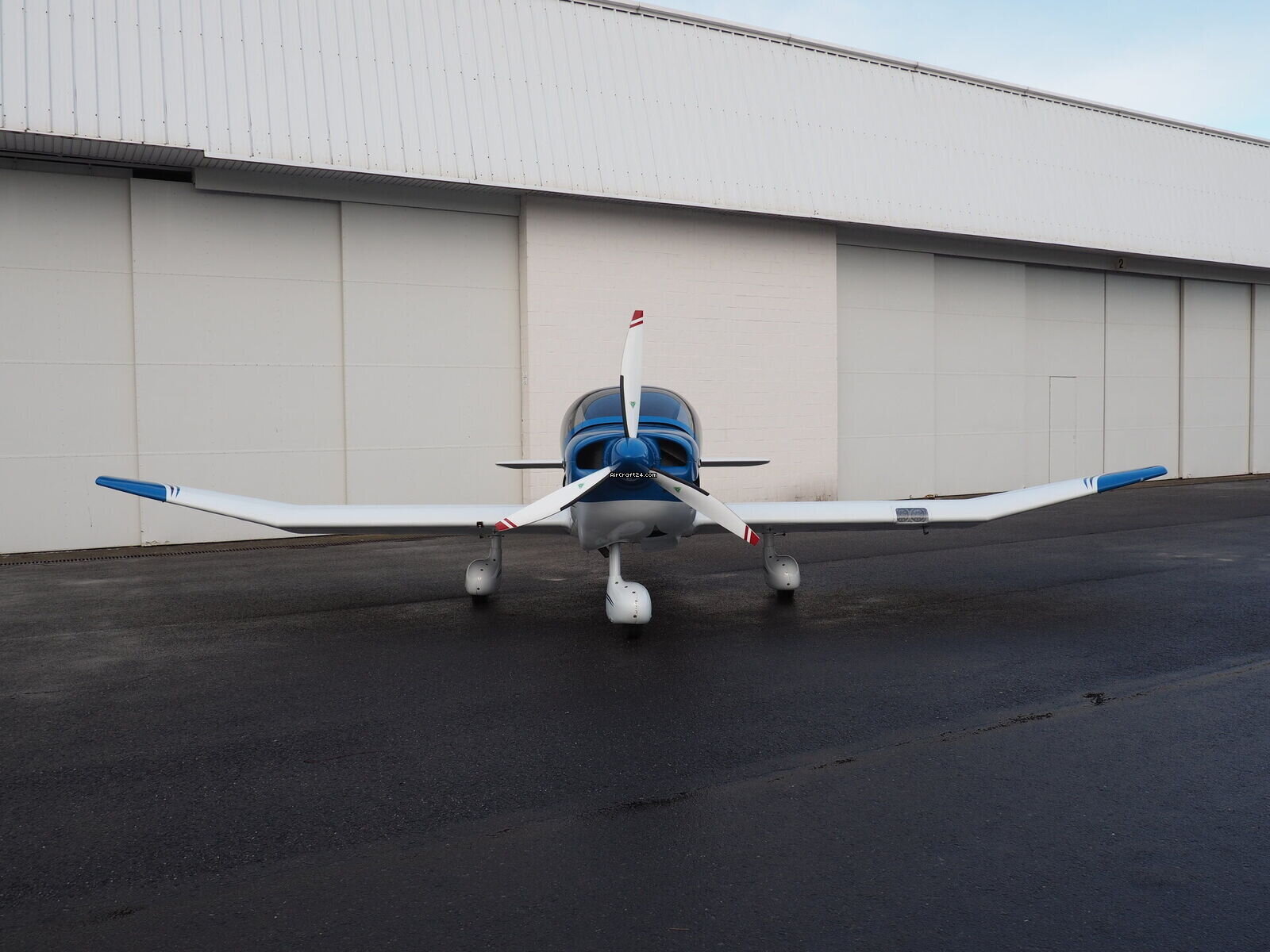 | Exterior | | Finished in a stunning electric blue over crisp white, this aircraft commands attention on any ramp. The dynamic "S-curve" striping emphasizes the sleek lines of the modern DR-400 fuselage |